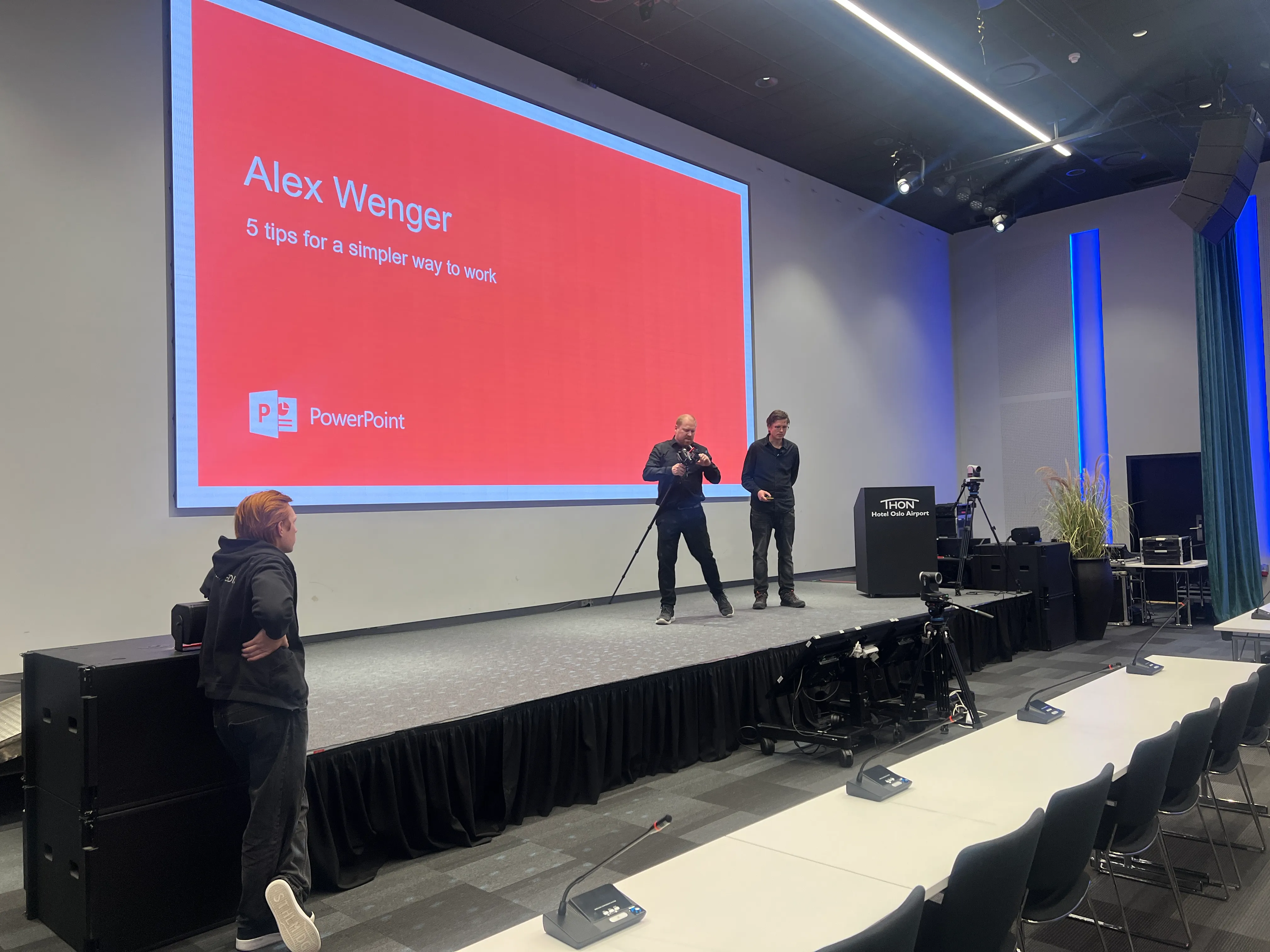 Vår tekniske avdeling sørger for at alt fungerer – fra mikrofon og projektor til scenelys og LED-skjerm.